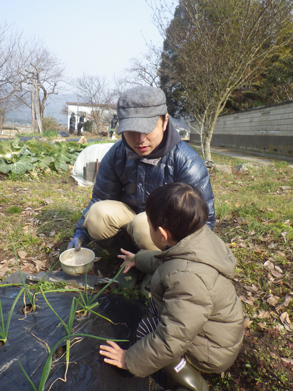 ウネづくりが決して得意でないくわはら・こうだに、新入りわたなべ。