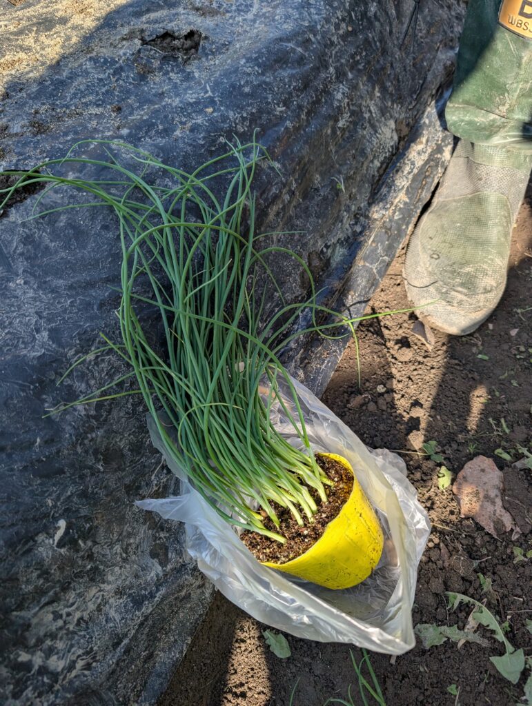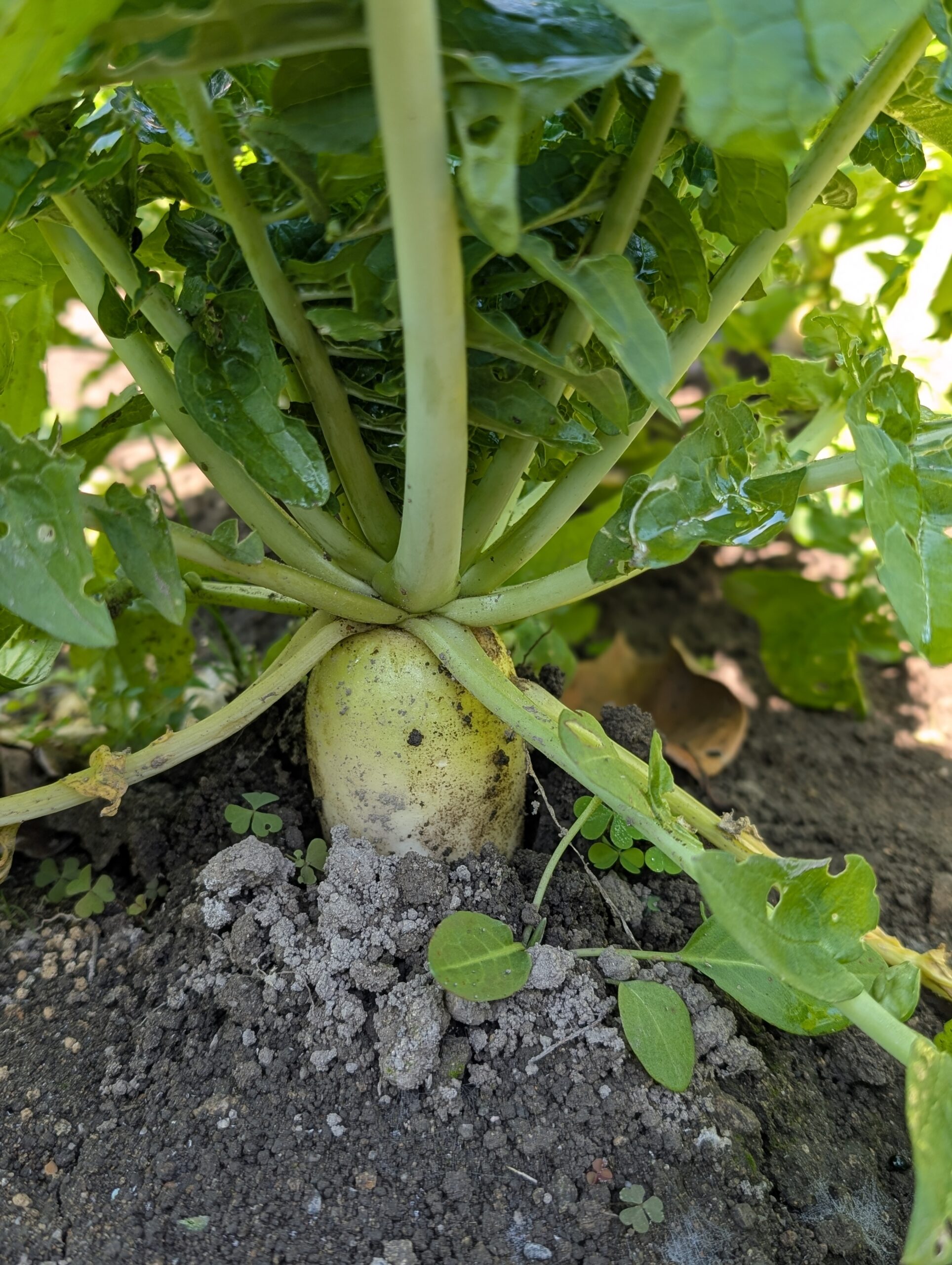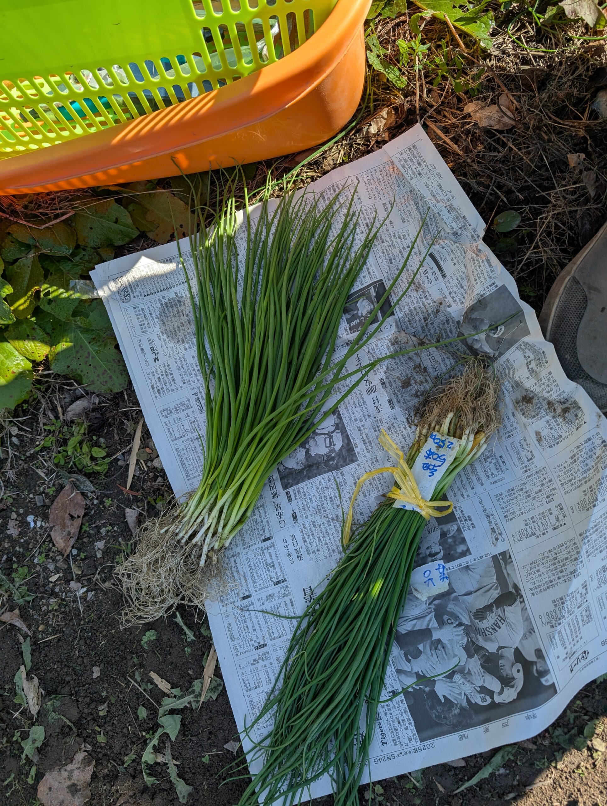 ニンジンは2回めの間引き。ダイコンは2本だけ残っていた間引き漏れを済ませ、岩津ネギも白い部分が育つように土寄せ。どれも良い感じに育っていて収穫が楽しみ。