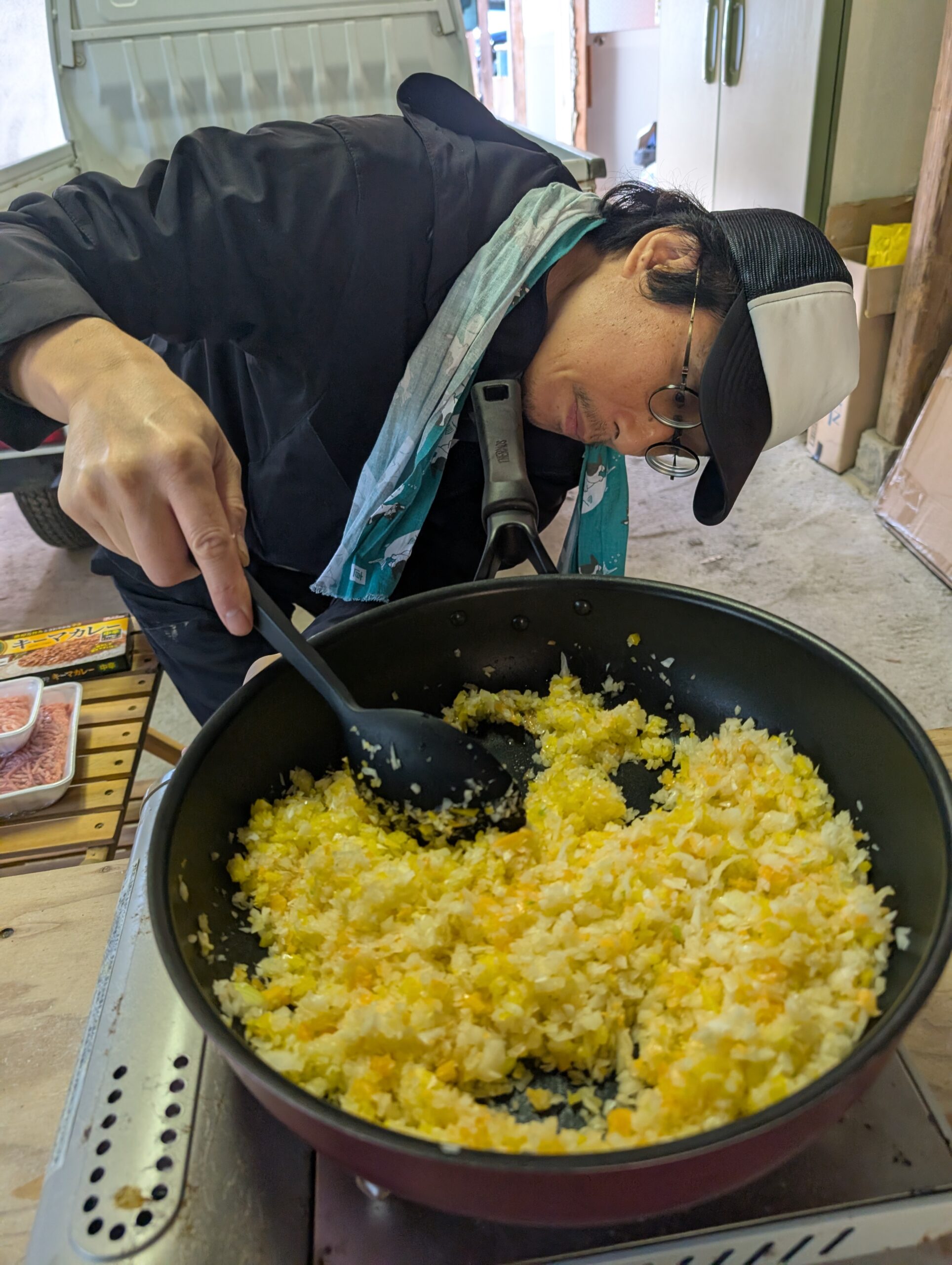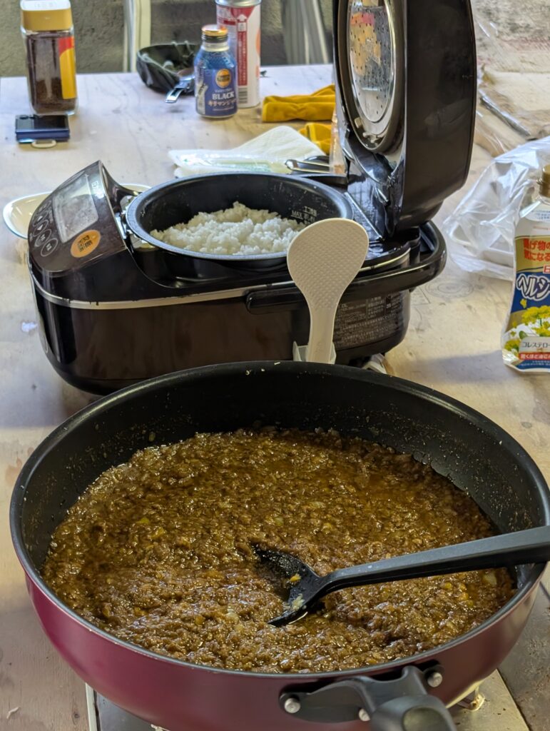 最後は、夏前に取った民家の自前タマネギを使って、久しぶりのカレー作り!