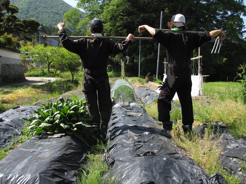 ホウレンソウなどを育てているウネの方に戻り、今度は新たにウネづくり!