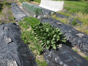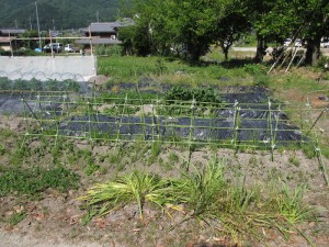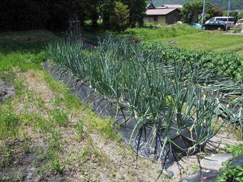 タマネギのウネも順調。タマネギの収穫のタイミングは葉が全体の8割くらい倒れてきたら・・・