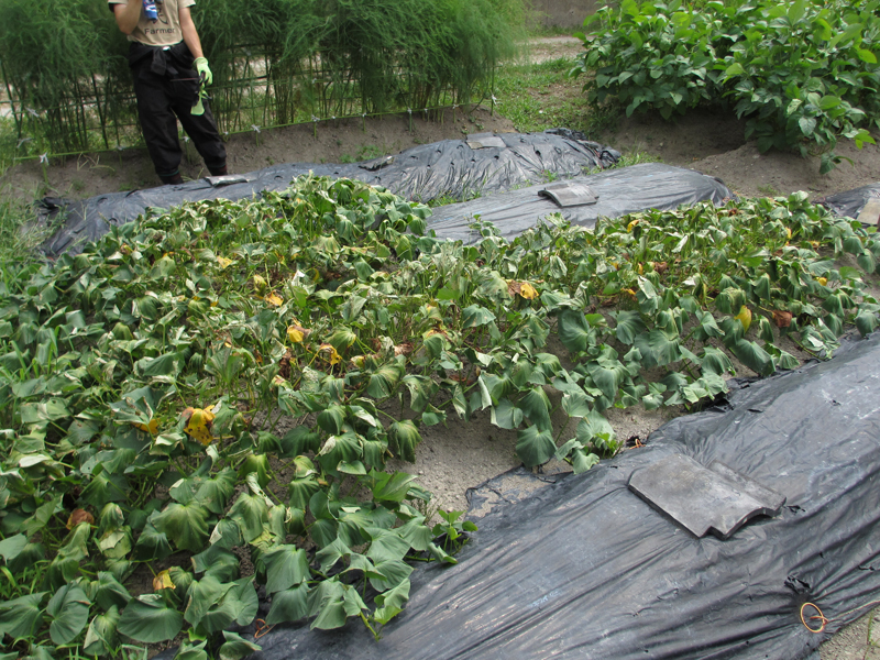 サツマイモ!ちょっと枯れ葉が目立ちますね・・・。