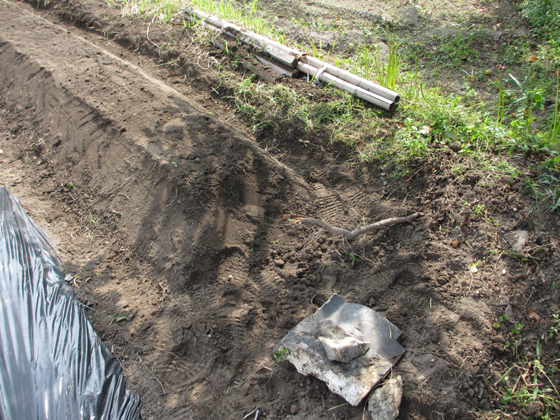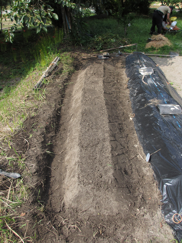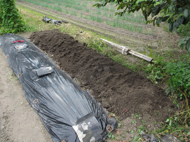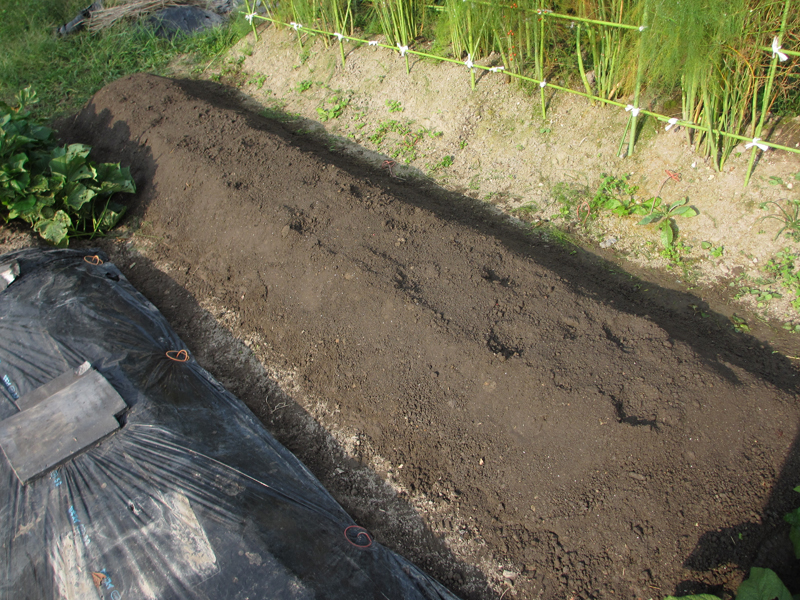 お次はホウレンソウと小カブを育てるウネ(マルチをしてるウネの横のウネ)へ。