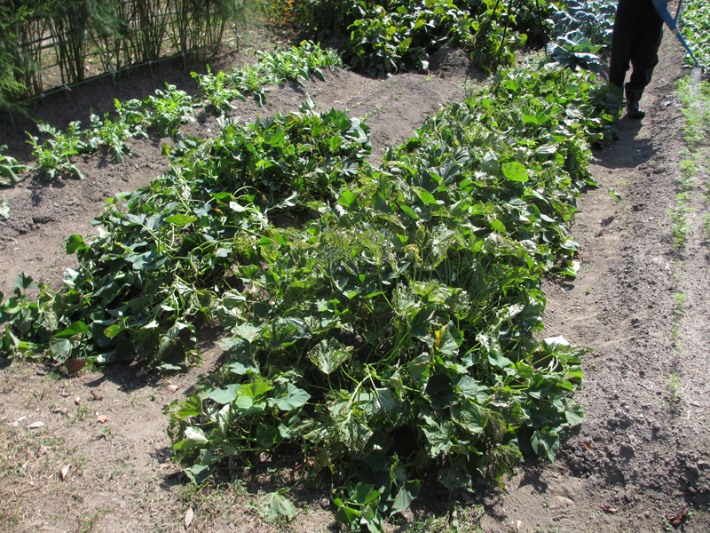 サツマイモはウネの内側に落ちている枯れ葉の除去のみ。