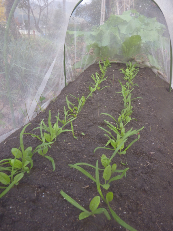 ダイコンとミズナは順調ですが、ホウレンソウは残念な感じ・・・ですね・・・。