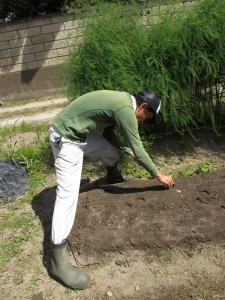さてさてそれでは作業作業・・・まずはニンジンのウネ・・・