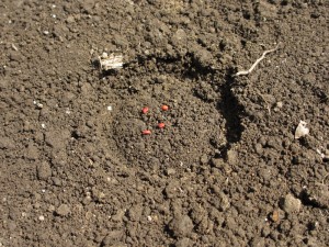 ネギの植え付けは、ウネを作った直後にウネをまた潰すような感じになりますが