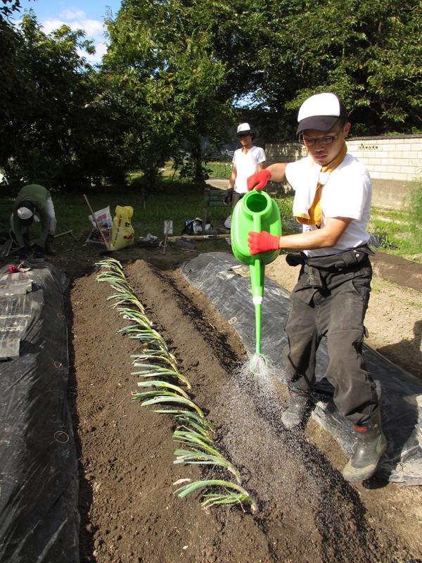 もう1本は今回の作業で、ウネを作ってすぐにネギの植え付けをしました。