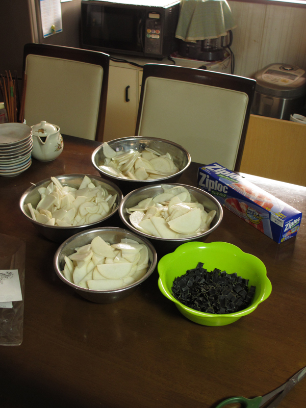 ゆず、鷹の爪、昆布・・・細かく切っておく