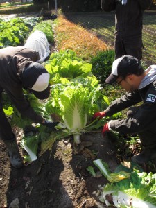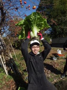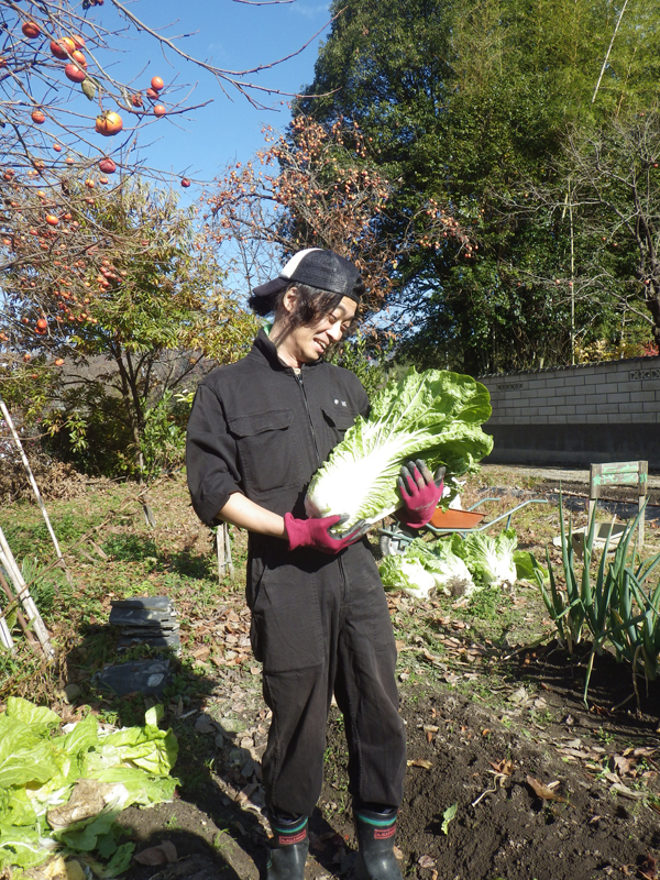 末期かもしれません。好々爺のような表情で見つめる先は・・・ハクサイです。