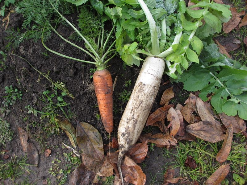 そう、これはデカくなりすぎたニンジン(左)と未熟に終わったダイコン(右)なのです。