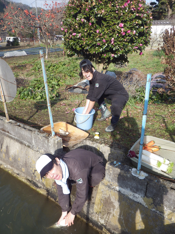 とりあえず先に収穫した野菜を洗って泥落としです。