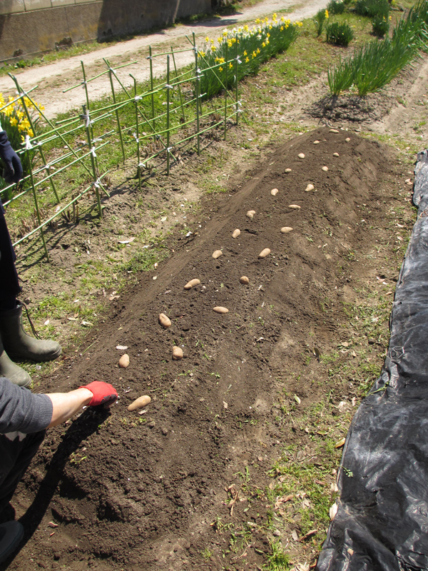 もりもと氏がタネイモを1コ1コ配置・・・・・
